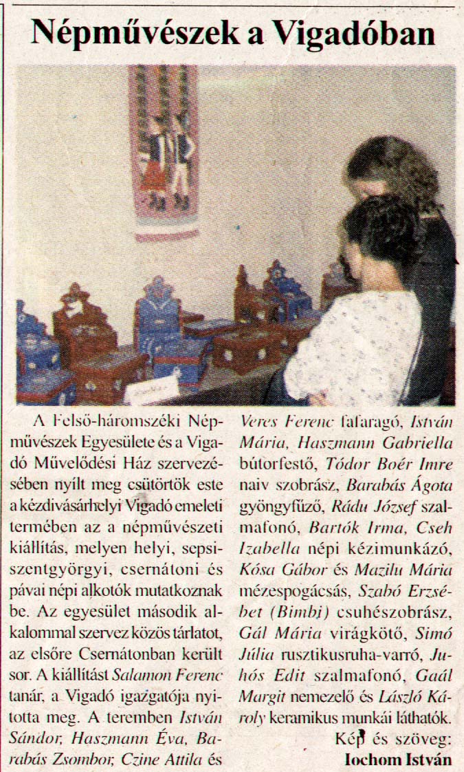 - Népművészek a Vigadóban. Háromszék, 2003.