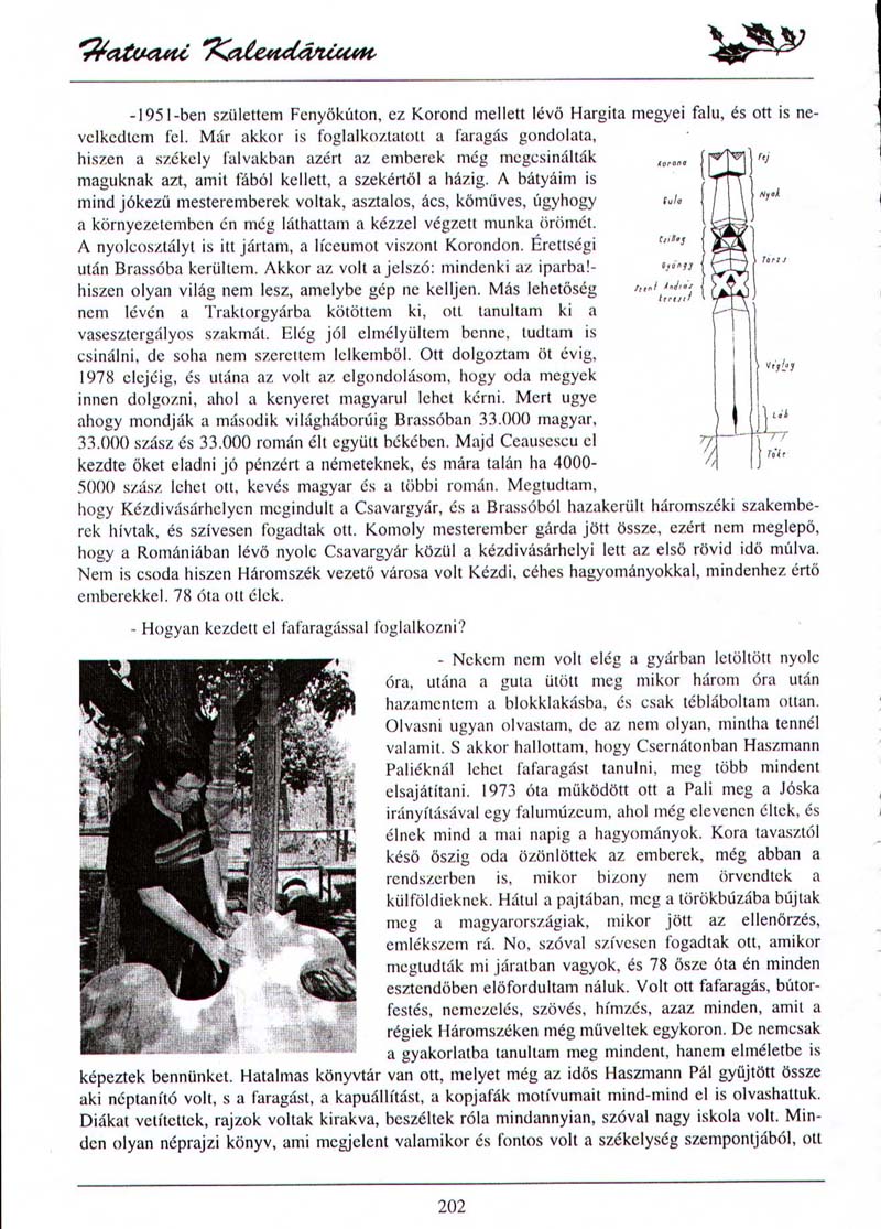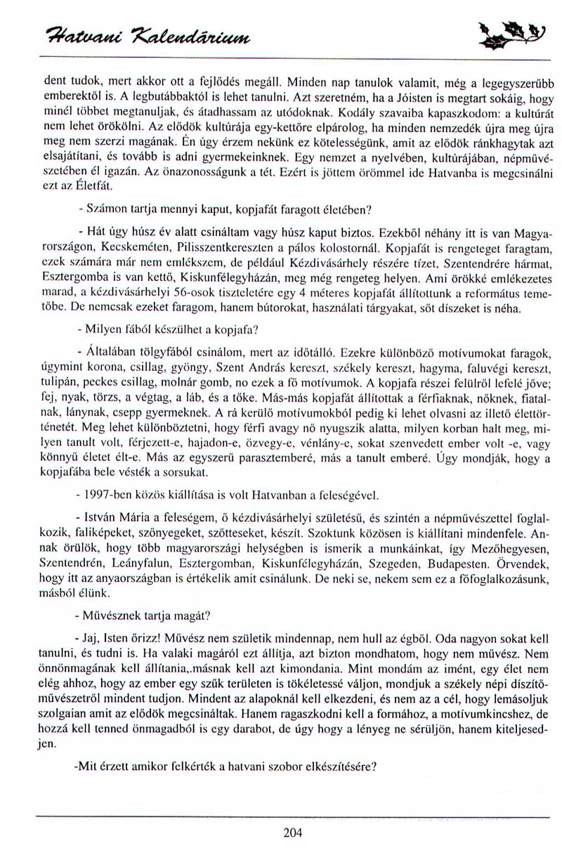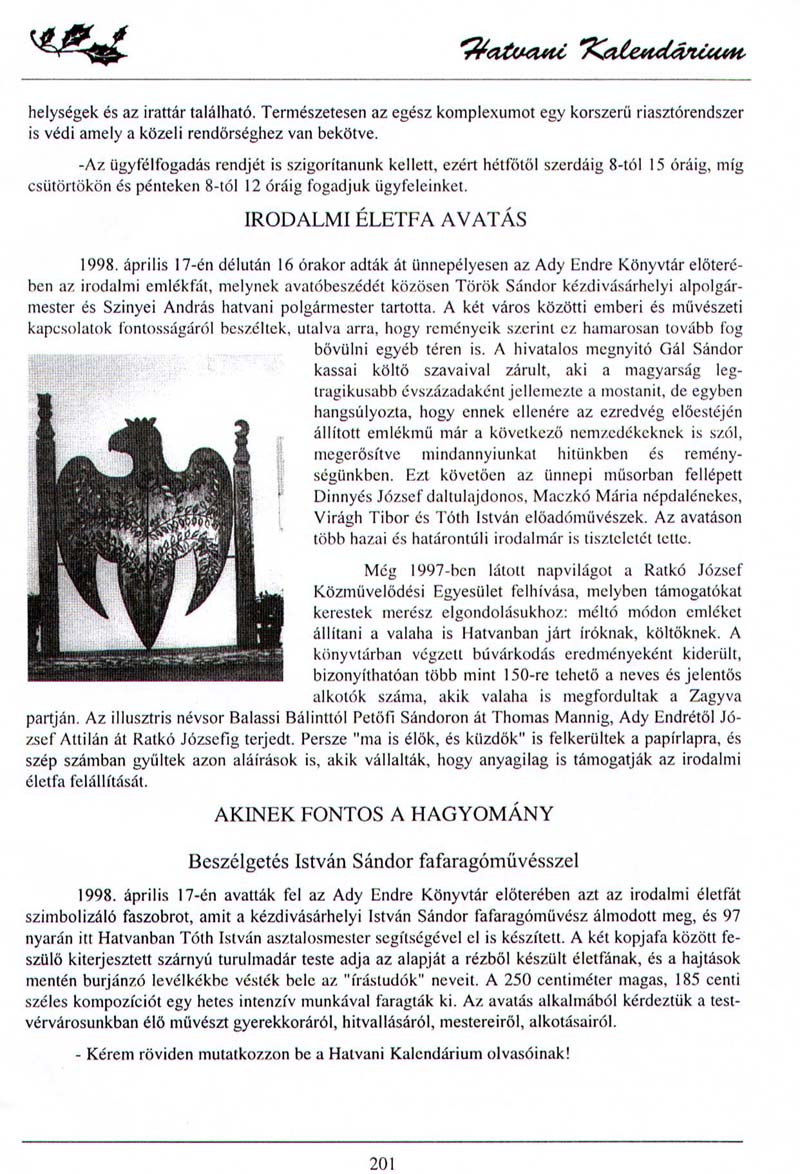 - Akinek fontos a hagyomány. Hatvani Kalendárium, 1999.