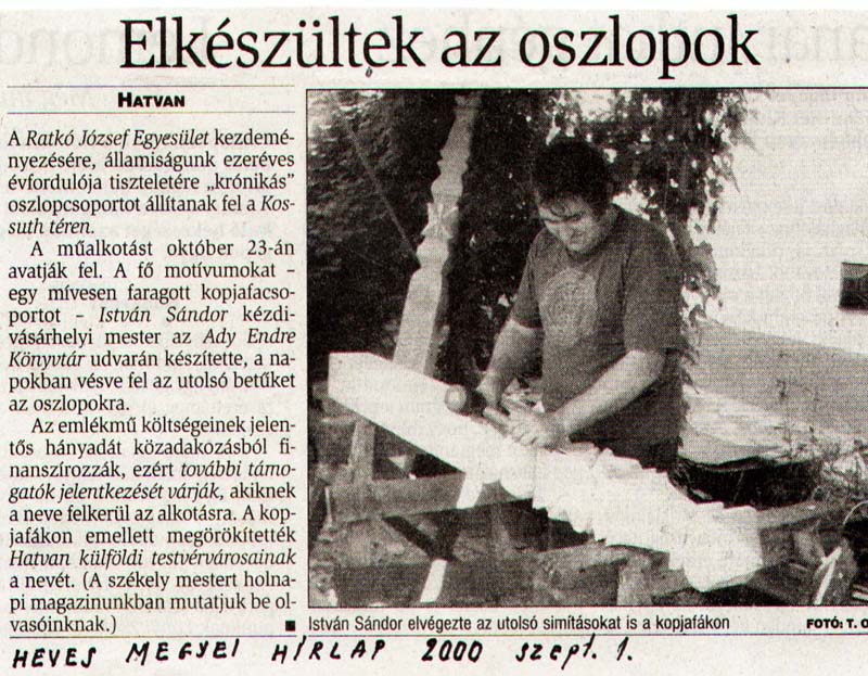 - Elkészültek az oszlopok. Heves Megyei Hírlap, 2000.