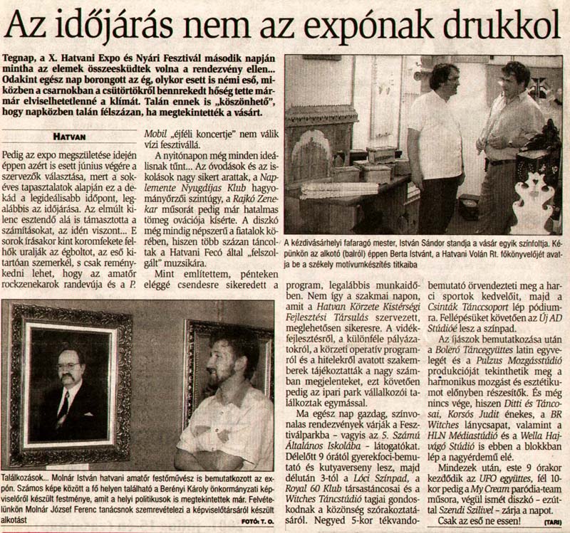 - Az időjárás nem az expónak drukkol. Heves Megyei Hírlap, 2001.