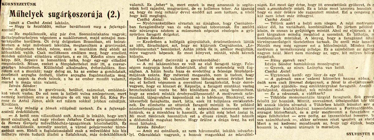 - Műhelyek sugárkoszorúja. Megyei Tükör/ 1, 2