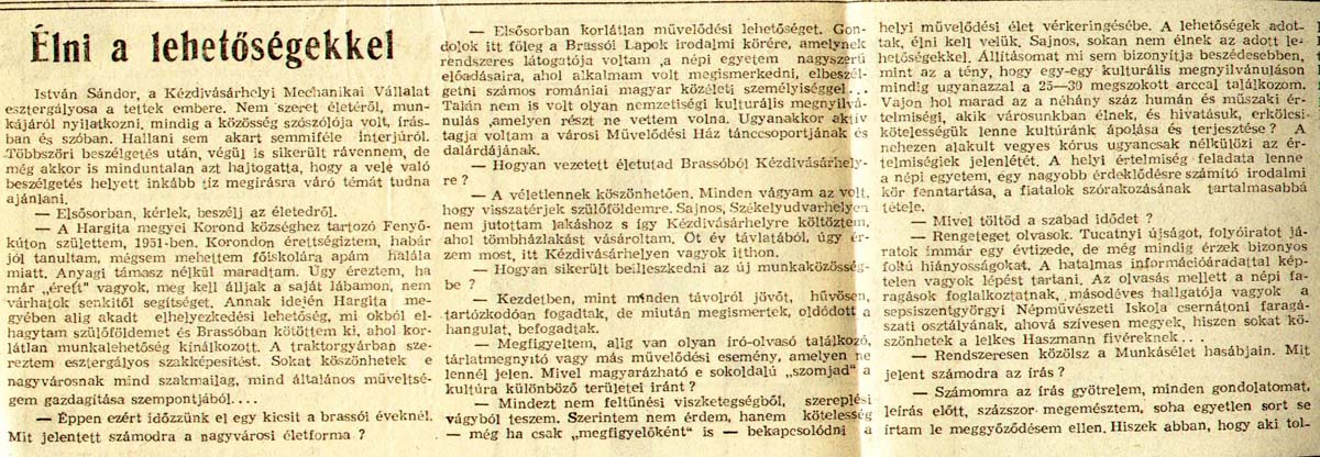 - Élni a lehetőségekkel. Megyei Tükör, 1982/ 1, 2