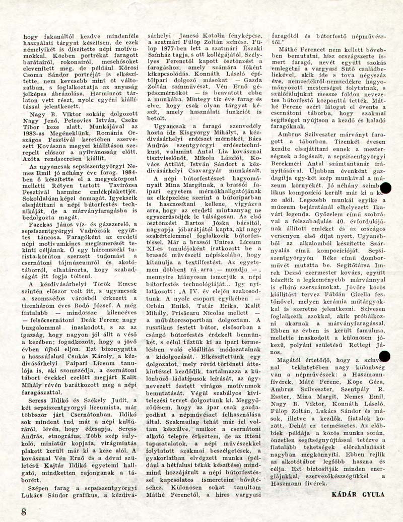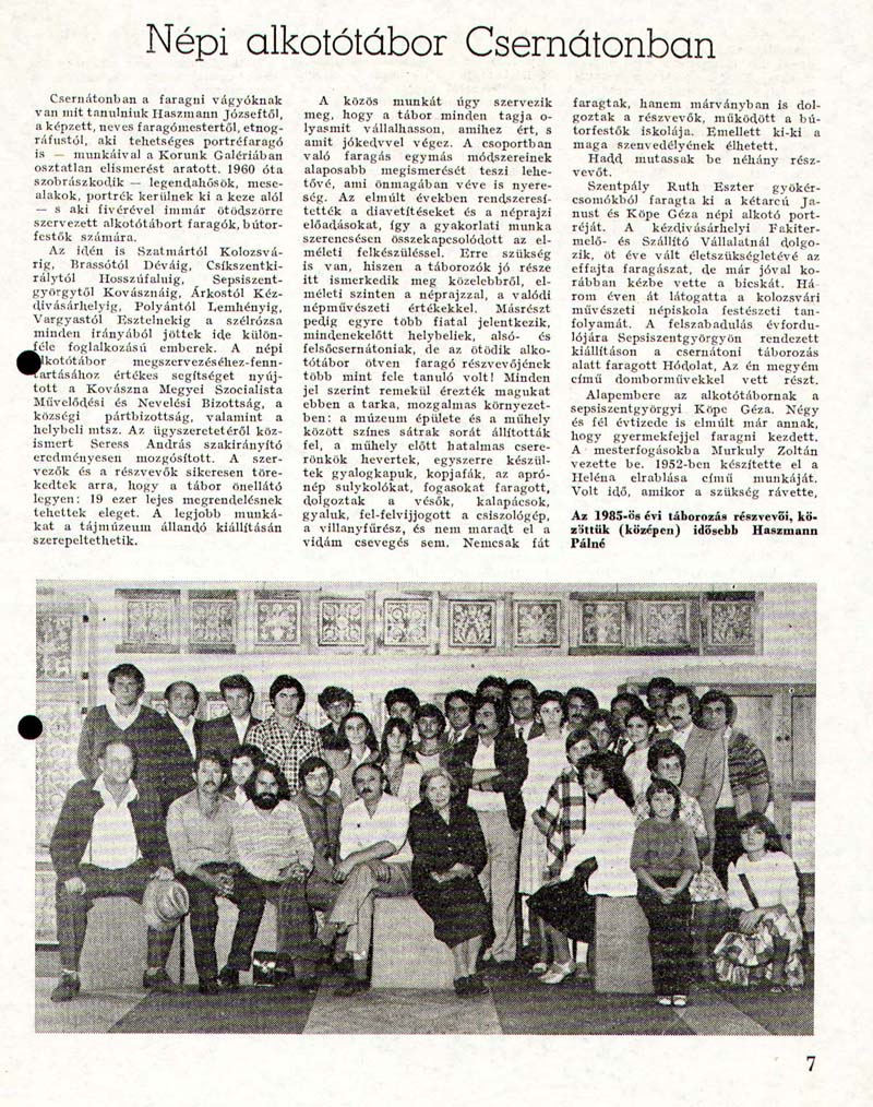 - Népi alkotótábor Csernátonban. Művelődés, 1985a/ 1, 2